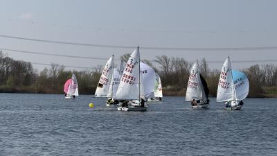 Turbulentes Aprilwetter bei eisigen Temperaturen und böigem Wind gestaltete die 420er Regatta spannend. 14 Boote gingen an den Start und hatten einige Herausforderungen zu meistern.