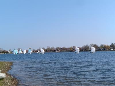 Bei bis zu 5 Windstärken aus West konnte beim diesjährigen goldenen Herbst gesegelt werden. Wettfahrleiter Marco zeigte sich zufrieden mit den Bedingungen, die drei angekündigten Läufe mit je drei Runden konnten problemlos durchgeführt werden. Wieder an Land wartete ein gemeinsames Essen auf die Segler.